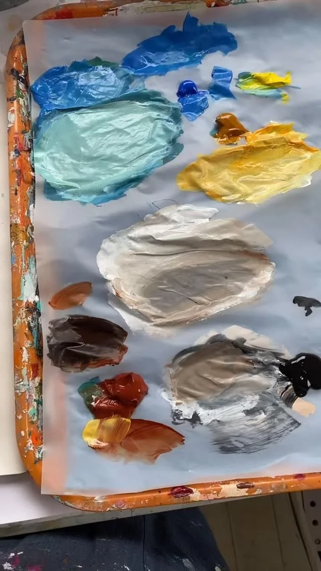 Acrylic allows layering and this is how I want to make an interesting surface that looks weathered, worn and tactile. Colour is everything but so is a good balance of tones.